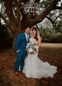 On April 4, three months after they were engaged, Cody and Casey were married in an outdoor ceremony held on Casey’s sister’s land in Gulfport, Mississippi. A few family members were present; others were able to watch the ceremony through Zoom.