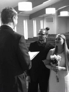 When the shelter-in-place orders began, the couple initially thought they’d keep the same date and hold a scaled-down event. But it became obvious that the lockdown wouldn’t end soon. Because they would need to qualify for married student housing where they both attend seminary, Chris and Clare couldn’t risk having their marriage delayed beyond the housing application date by the city’s shelter-in-place orders. So they conferred with their pastor during their last premarital counseling session and decided to change their plans and marry sooner.